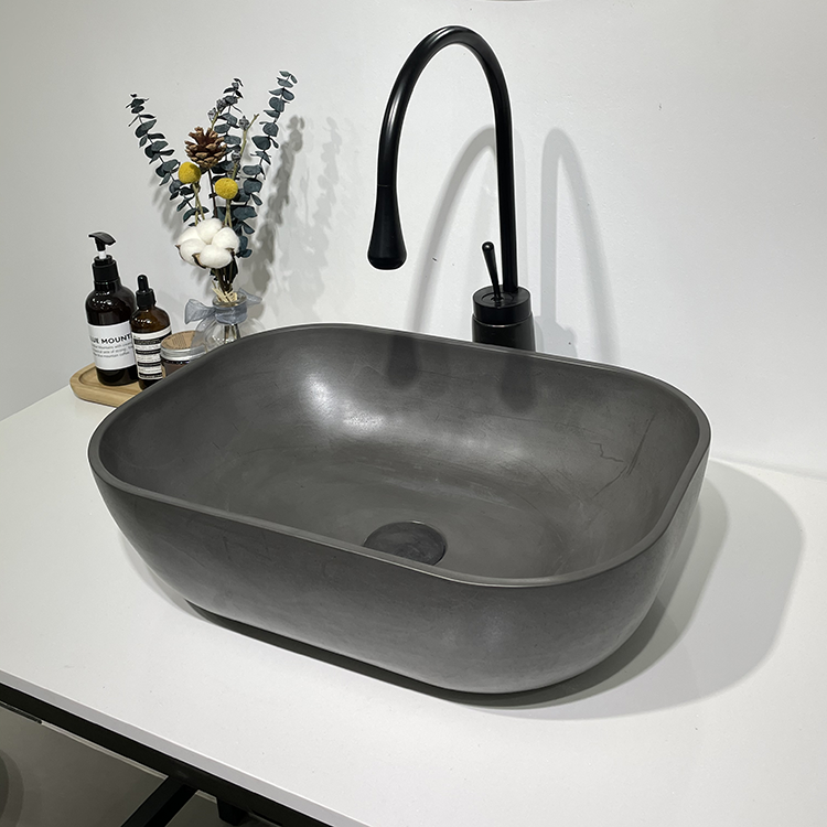 Накладная раковина из прочного бетона серии RB003-DG — стильный элемент интерьера ванной комнаты.