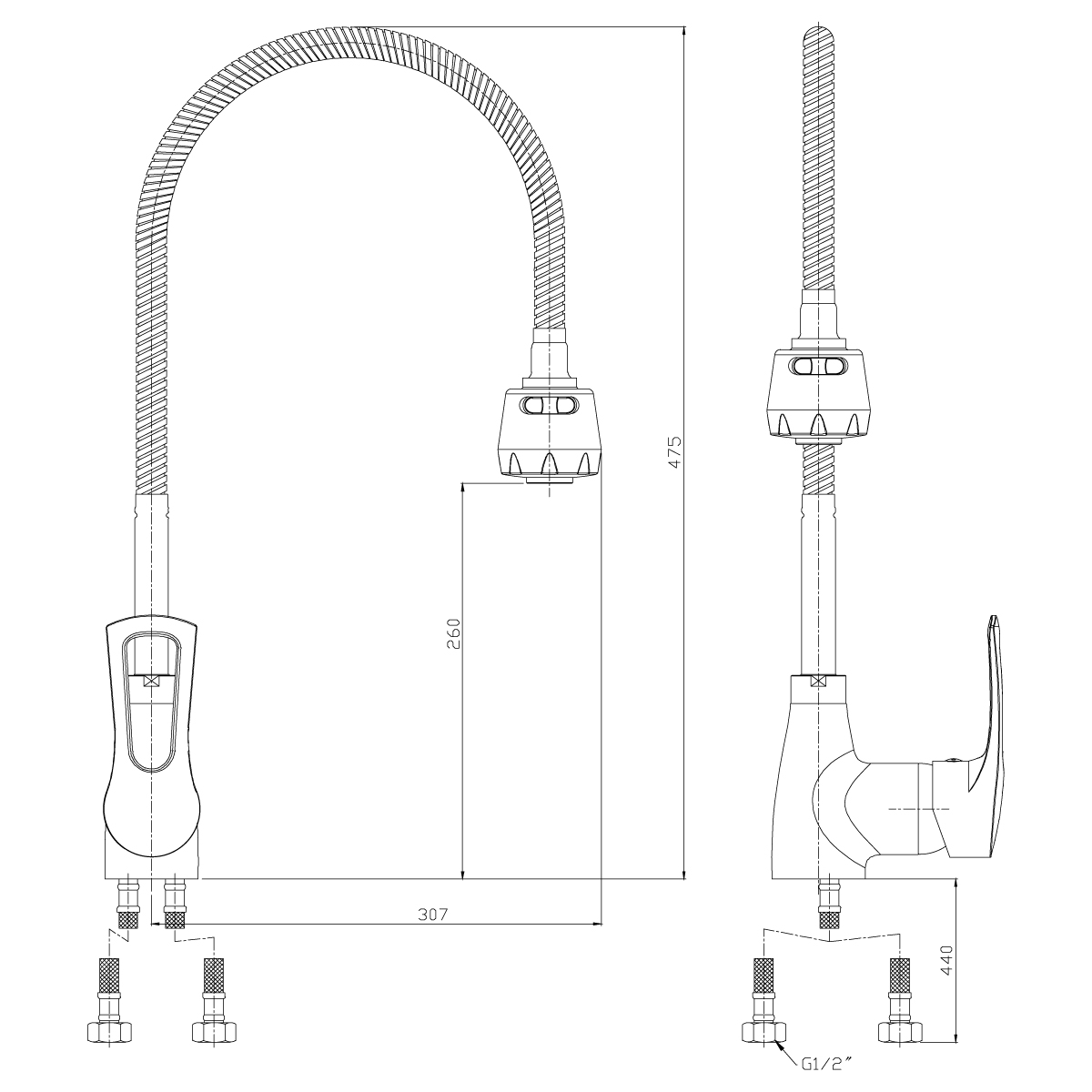 - Удобная конструкция гибкого шланга позволяет свободно перемещать кран над рабочей поверхностью, экономит пространство и обеспечивает комфортное использование.